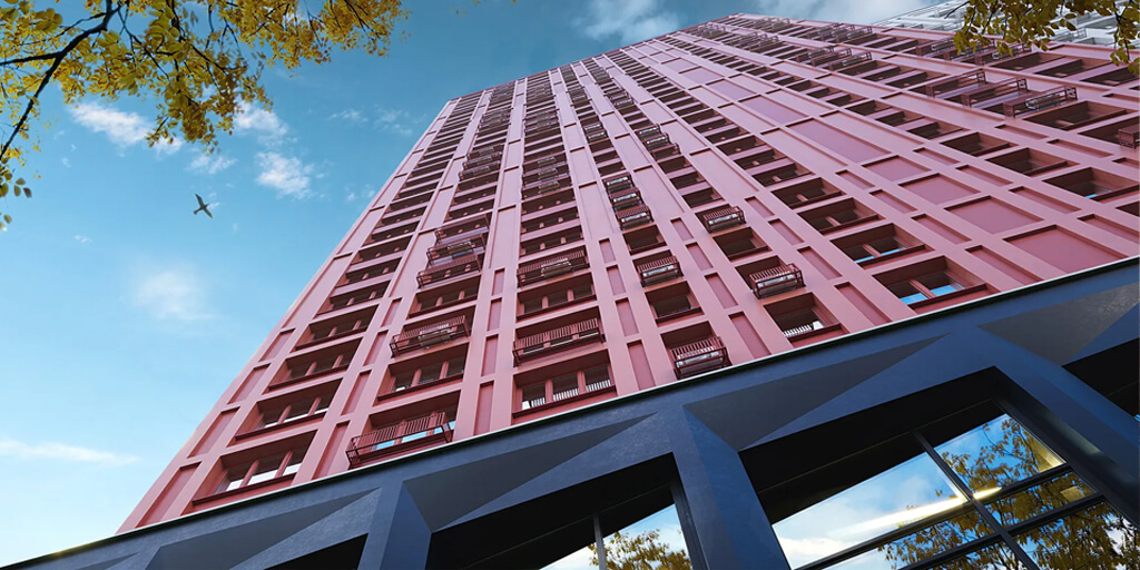 Архитектурное решение направлено на создание комфортного и светлого пространства: продуманная инсоляция, панорамные окна, эргономичные планировки. Даже корзины для кондиционеров оформлены декоративными экранами в единой цветовой гамме с фасадами, что подчёркивает внимание к деталям. Такой подход обеспечивает визуальную целостность и архитектурную культуру проекта, которая выгодно выделяет его на фоне стандартной застройки.