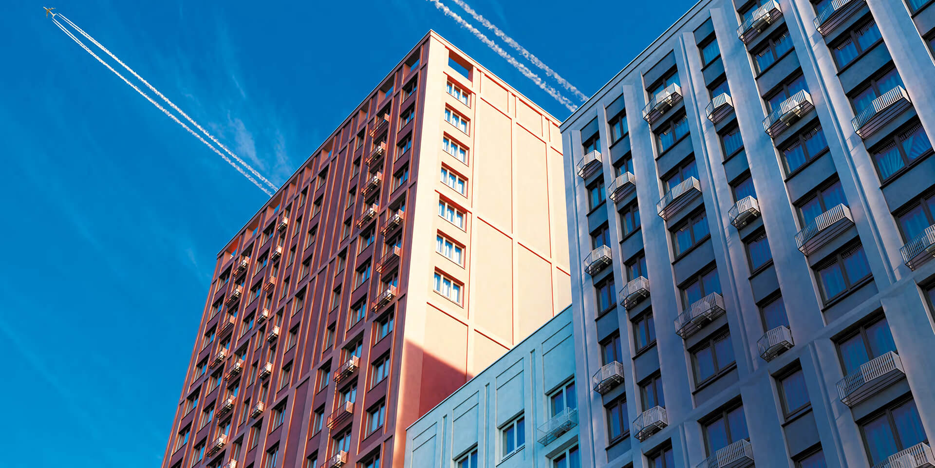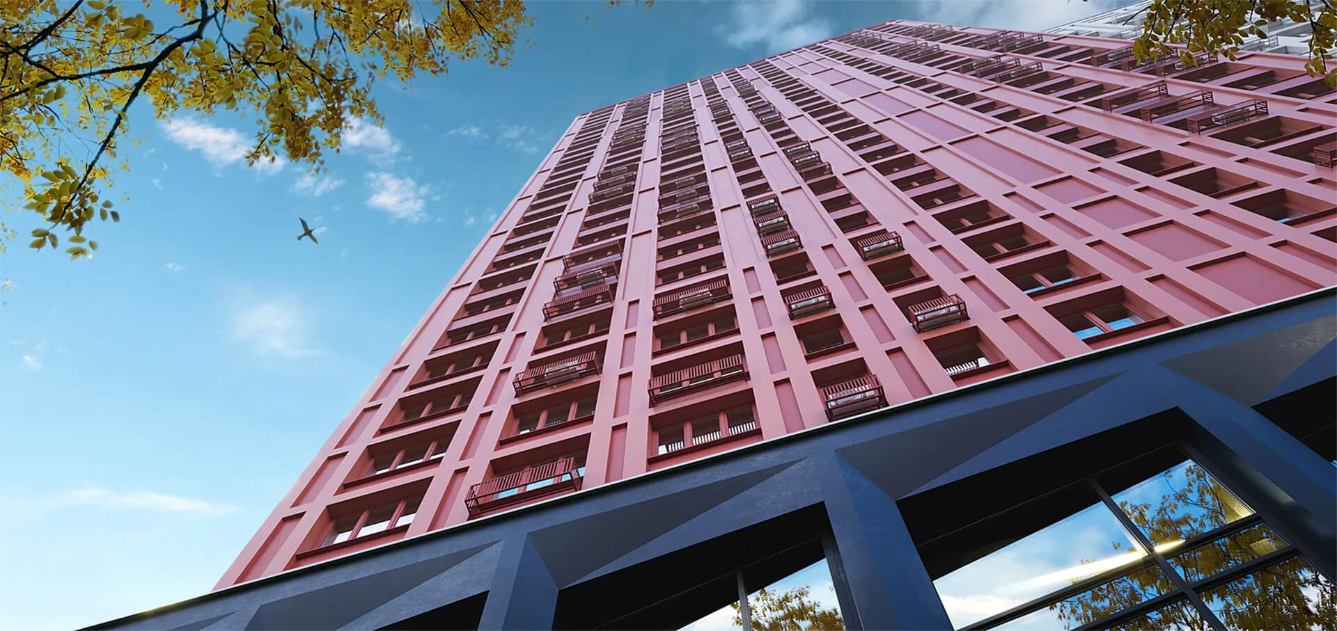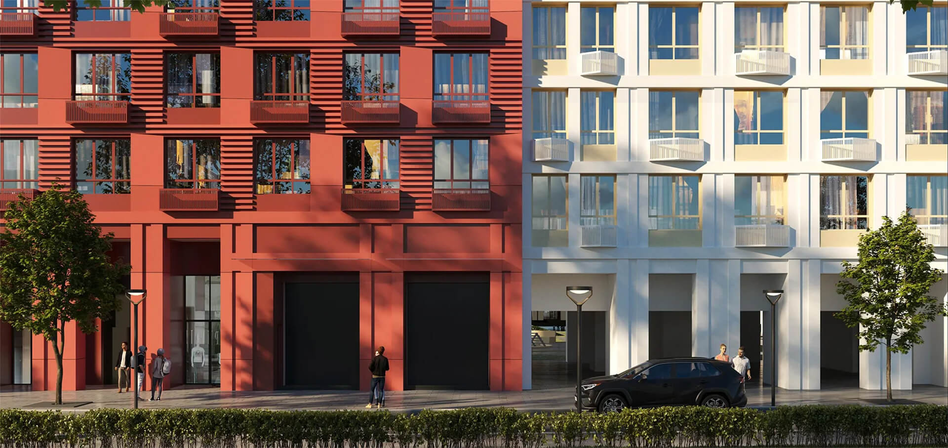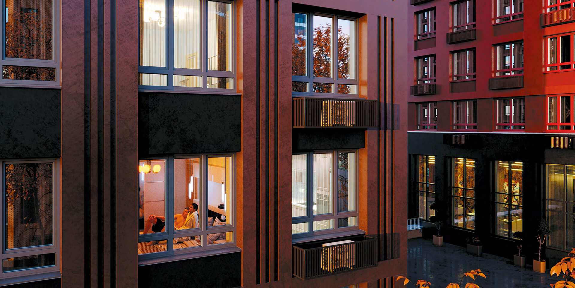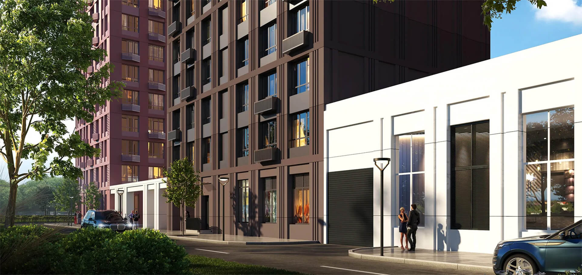 Архитектурное решение направлено на создание комфортного и светлого пространства: продуманная инсоляция, панорамные окна, эргономичные планировки. Даже корзины для кондиционеров оформлены декоративными экранами в единой цветовой гамме с фасадами, что подчёркивает внимание к деталям. Такой подход обеспечивает визуальную целостность и архитектурную культуру проекта, которая выгодно выделяет его на фоне стандартной застройки.